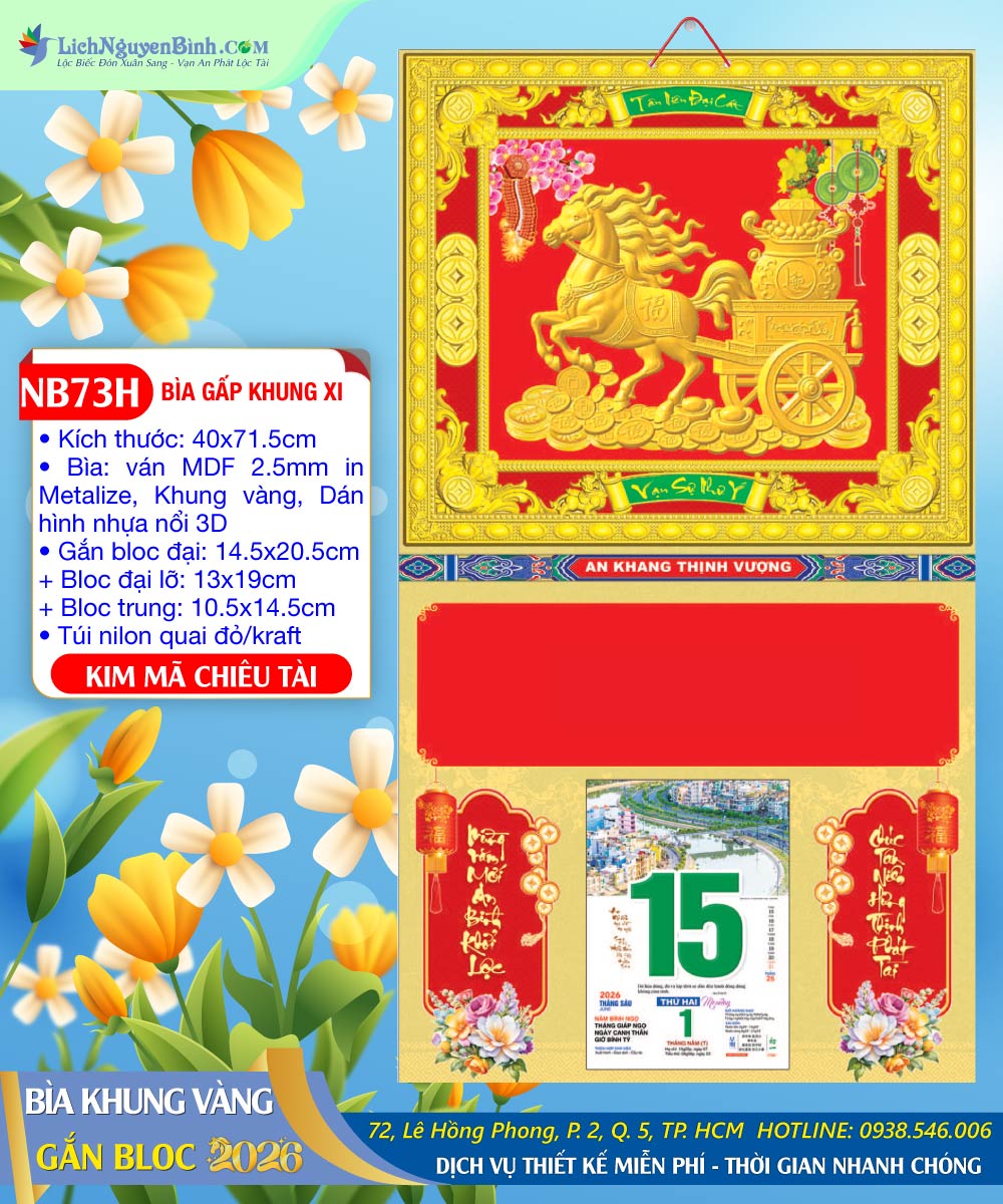 Mã Số: NB73H – Bìa Khung Vàng (40×71.5cm) Dán Nổi – Kim Mã Chiêu Tài
