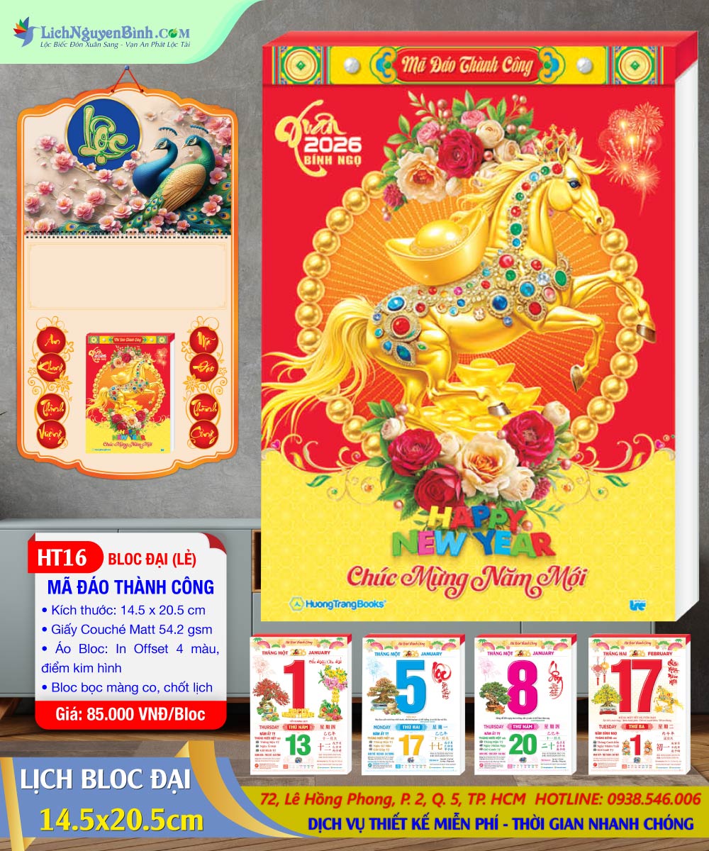 Mã Số: HT16 – Bloc Đại (14.5×20.5cm) – Mã Đáo Thành Công (Bloc Lẻ)