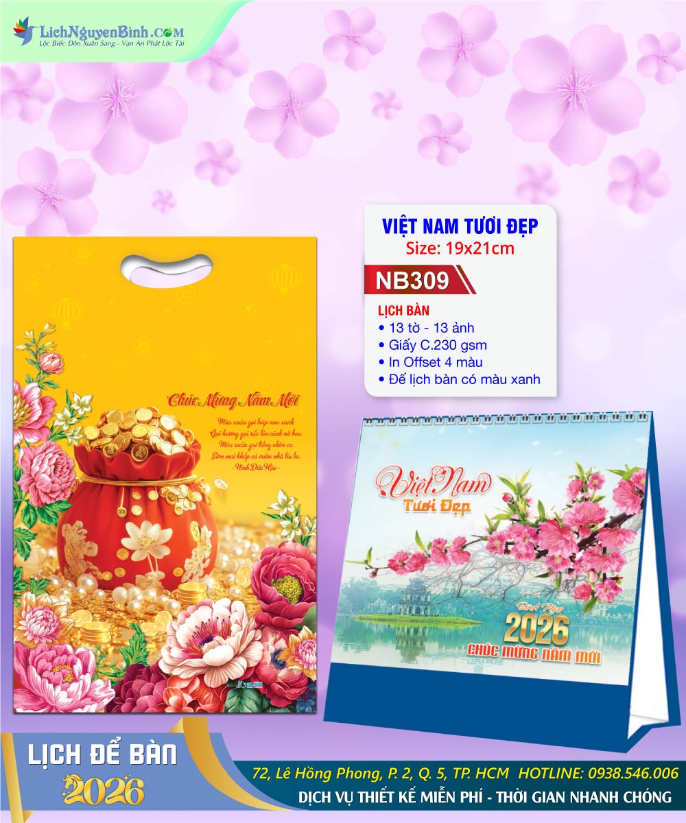 Lịch Để Bàn Nguyên Bình 2026 mới nhất hiện có hơn 100 Mẫu Lịch Để Bàn A, Lịch Để Bàn M luôn được sử dụng hầu hết ở mọi nhà, đặc biệt là nhân viên văn phòng, công sở. Lịch Để Bàn Việt Nam Tươi Đẹp có kích thước vừa nhỏ, gọn, dễ sử dụng, dễ lật, dễ ghi chú, và đặc biệt làm vật trang trí cho bàn làm việc trở nên chuyên nghiệp hơn.